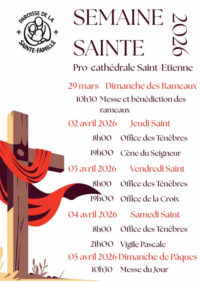 La Semaine Sainte nous appelle à nous rassembler pour vivre ensemble ce sommet de l’année liturgique. Cette semaine nous offre des jours riches de rendez-vous avec le Seigneur. Comme à chaque célébration, Dieu nous parle et nous fait grandir par la liturgie. Dans la joie qui nous anime à ces quelques jours de Pâques, Dieu nous appelle à nous joindre à son Fils. En vivant chacune de ces étapes, Dieu révèle toujours plus l’amour qu’il porte pour chacun de nous.